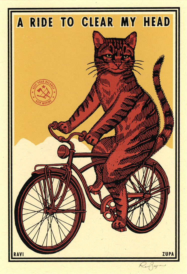 I’ve returned to an old favorite of mine and drawn a handful of new animals riding bikes—partly because I need to get back into cycling to stay healthy. My bike actually sits in the same room where I draw, so I see it every day, but I’ve been a bit lazy lately. I figured that drawing a few animals riding bikes might get me one small psychological step closer to being more active.