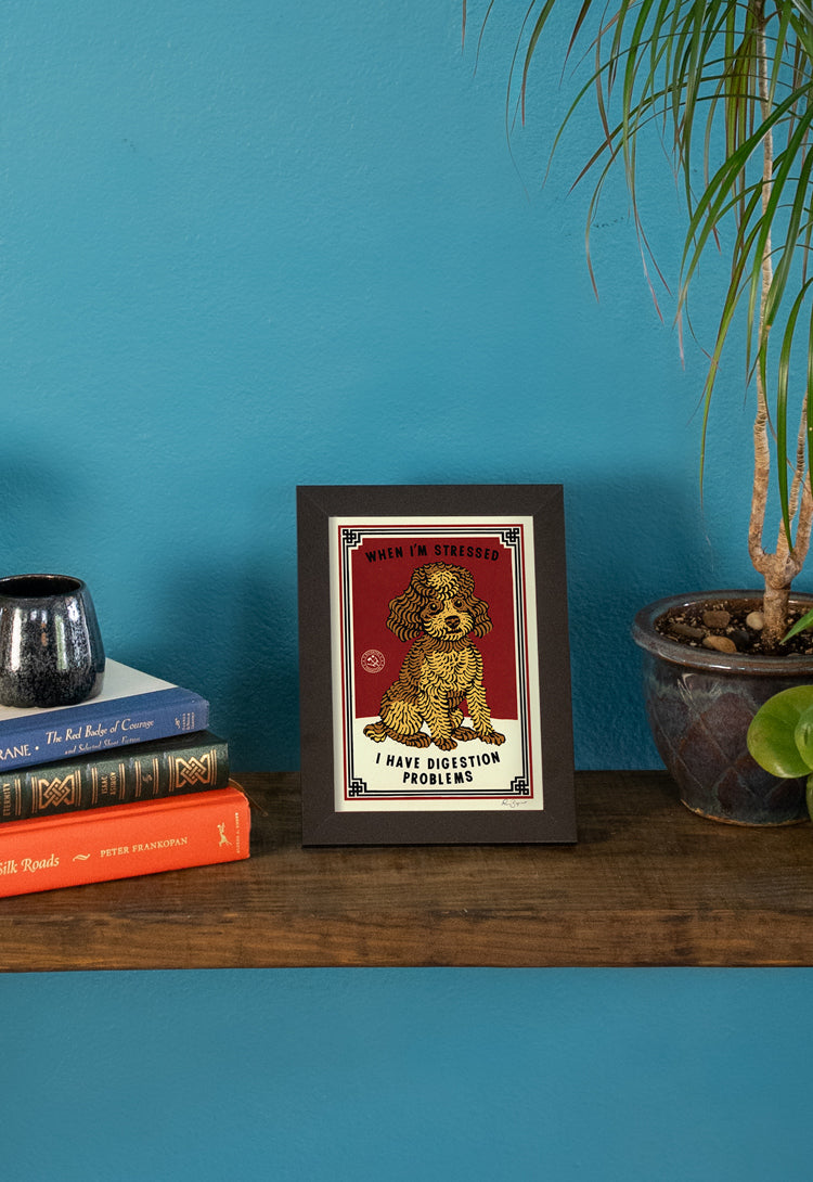 INTRODUCING THE BIG PERSONALITIES SERIES! Many years ago, I lived with someone who ran a doggie day-care out of our house. Before that, I didn’t have much contact with dogs at all. I had always loved cats and always had them as pets growing up. But during that period it was not uncommon for us to have as many as 11 small dogs in the house at the same time. I learned a lot about many breeds and came to really love dogs. These new prints and matchbox set are inspired by the real personalities of actual dogs that I met during that time. Click here to watch a music video that I created while living in that doggie day-care-house, It stars many of those same dogs.